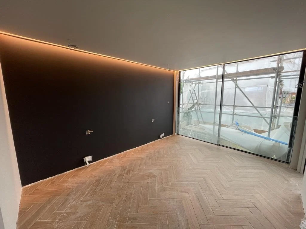 This Master suite features wall-to-wall and floor to ceiling sliding doors and an En Suite sat under a structural glass box and roof with views for miles across London from the shower.
