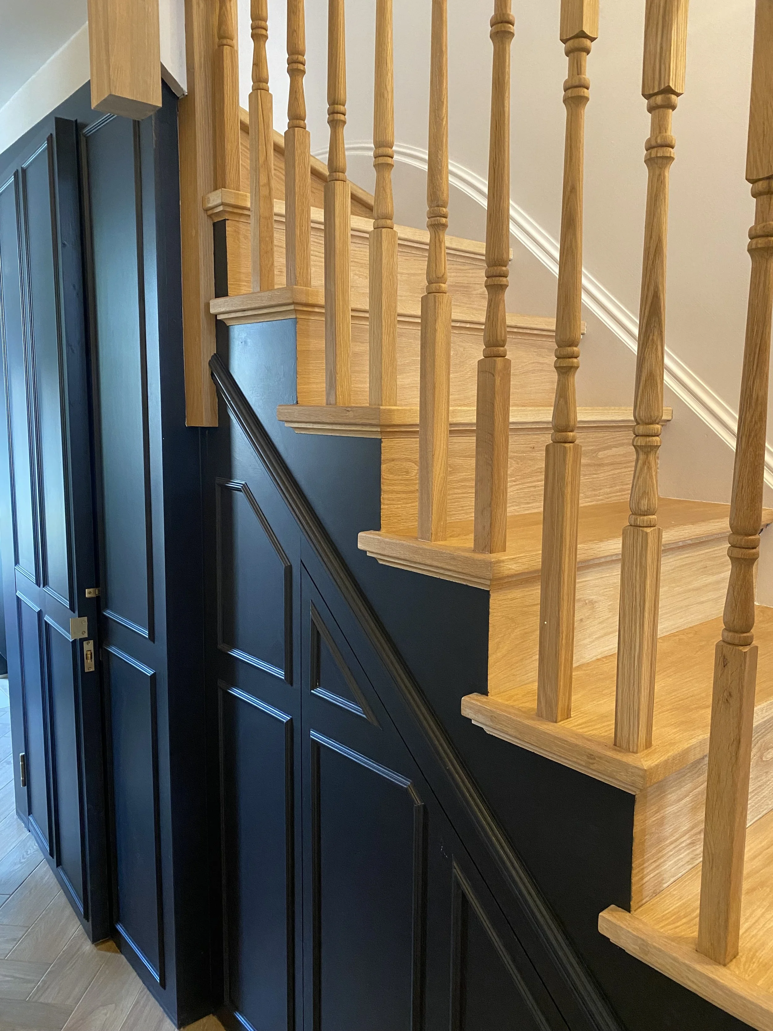 From restored fireplaces, new panelling, cornices and ceiling roses to bespoke joinery, herringbone floors and new hand-made oak staircases - our client worked tirelessly to bring this vision to life.